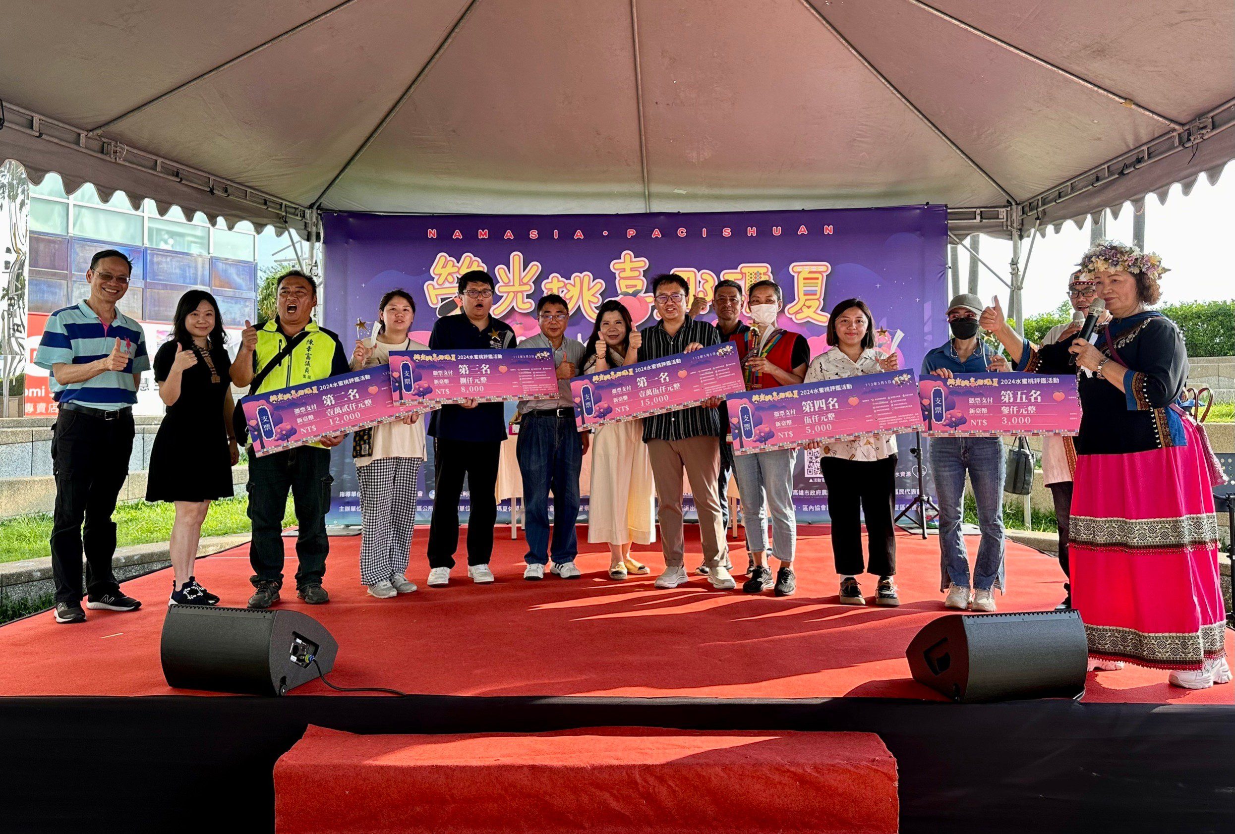 本次的那瑪夏水蜜桃評鑑會暨市集活動,在一早即湧入許多客人,不到一小時搶光700多盒水蜜桃,真的十分搶手。而水蜜桃評鑑出的第一名為「林美蓮」、第二名為「孫文德」、第三名為「彭正崑」、第四名為「孫榮貴」、第五名為「黃納邦」等獲獎的水蜜桃,不僅受到專業評審團的青睞,評鑑後的水蜜桃更是讓大家爭向競標,證明奇貨可居,桃農們真的樂開懷。