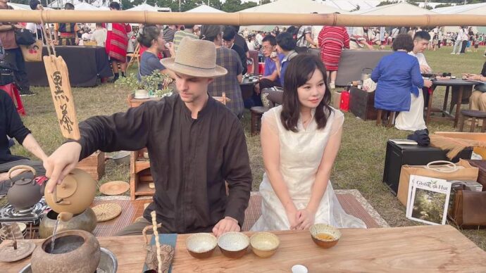 茶博會「邦尼奉茶」,茶師巧裝打扮,展現不同茶文化,還有國際茶席迎賓,茶體驗,因為這樣得以縱橫古今,茶杯裡盛著滿滿的心意,身著古裝的茶人泡茶,喝茶聊天談古今,相映成趣。茶席間,可以看到扮皇帝的茶師在奉茶,顛覆高高在上印象;老外出現在茶博會泡茶,分享喝茶樂趣,一杯茶水,跨越國際。還有茶藝師身著清代服飾,或是原住民泡茶,置身其間,彷彿走入茶的「時光隧道」,這場茶會讓人縱橫古今。