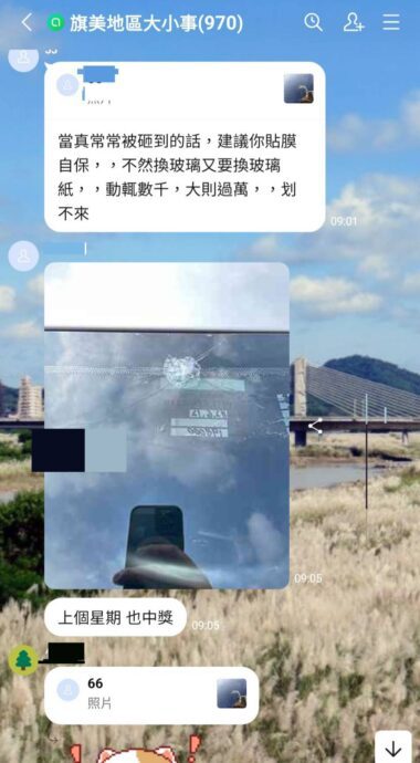 旗山居民近期在地方網路社群貼文抱怨,駕車行經國道10號旗山至燕巢段,發現砂石車出入頻繁也出現許多違規狀況,部分砂石車除了併排行駛、行駛內側車道、任意變換車道外,最常發生的就是沒有固定好車斗罩,導致砂石及泥水掉落,落地砂石被方車輛輾過、彈飛,好幾位車主的擋風玻璃就這樣被砸破,甚至找不到人賠償,更有網友憤怒表示這段路,「車窗破裂根本是特產!」