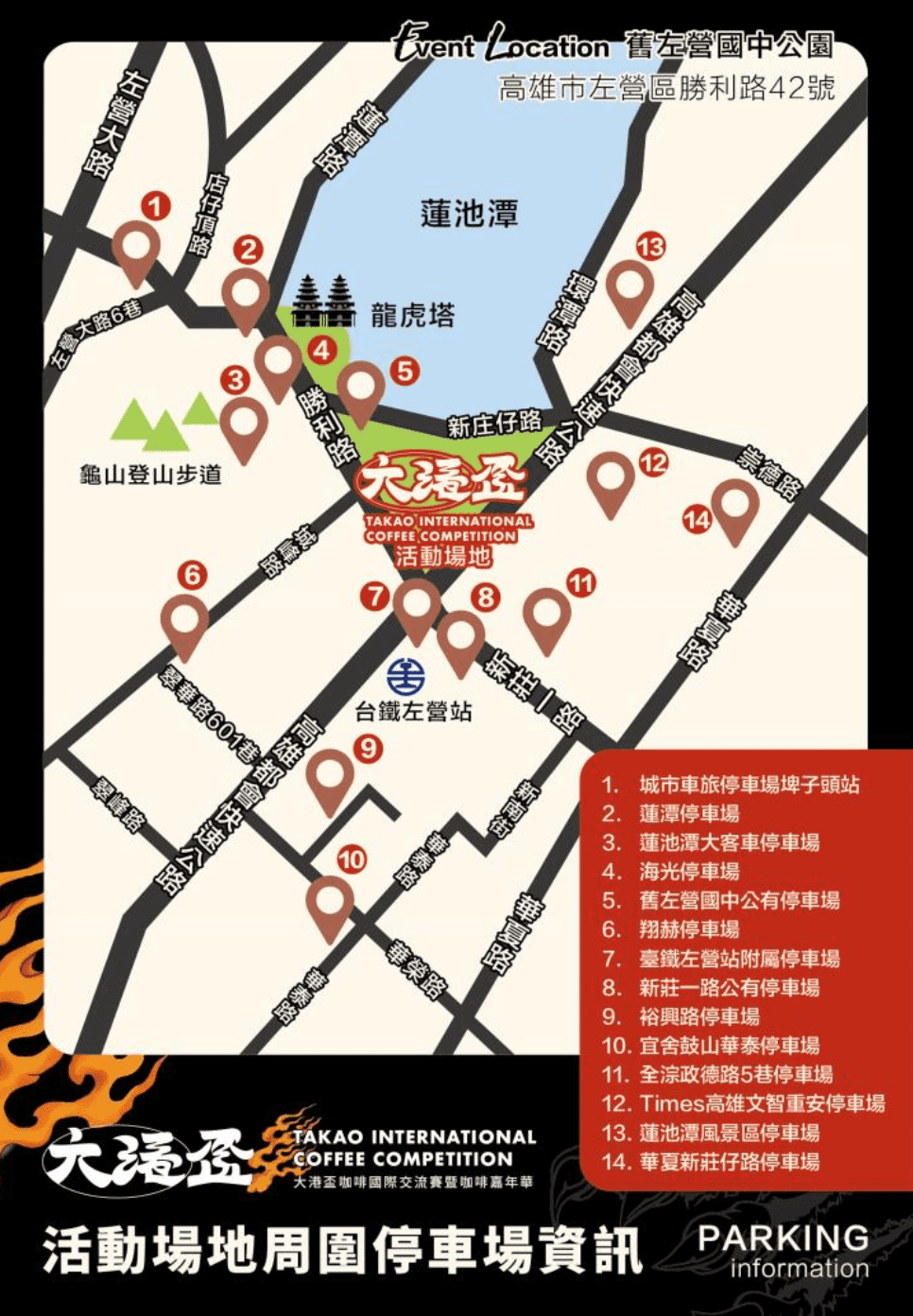 ▲2023 第五屆 大港盃咖啡國際交流賽暨嘉年華停車資訊。(圖/業者 提供)