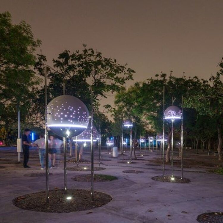 藝術團隊紅聲數位表示,《島球訊號》從設置之初便廣受遊客們喜愛,是園區內公共藝術的一大亮點。《島球訊號》位於生活體驗區的森林當中,是由不鏽鋼所打造、12顆大小不一的球體,遠看彷彿飄浮在森林中的氣泡,從大地中緩緩升起,在夜晚,球體會隨著周遭環境的濕度、溫度,變換成不同的色彩,並閃爍著繽紛光芒,猶如會呼吸的氣泡,歡迎民眾前來森林漫步,享受絢爛多變的彩色泡泡所帶來的視覺饗宴。