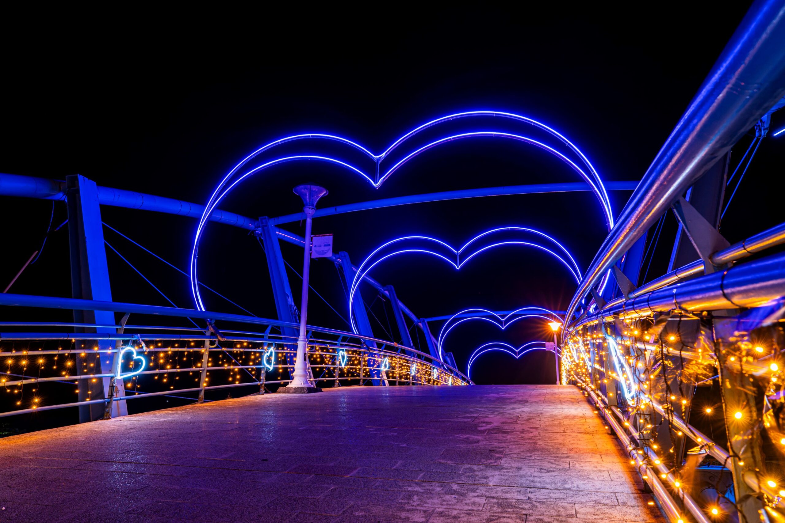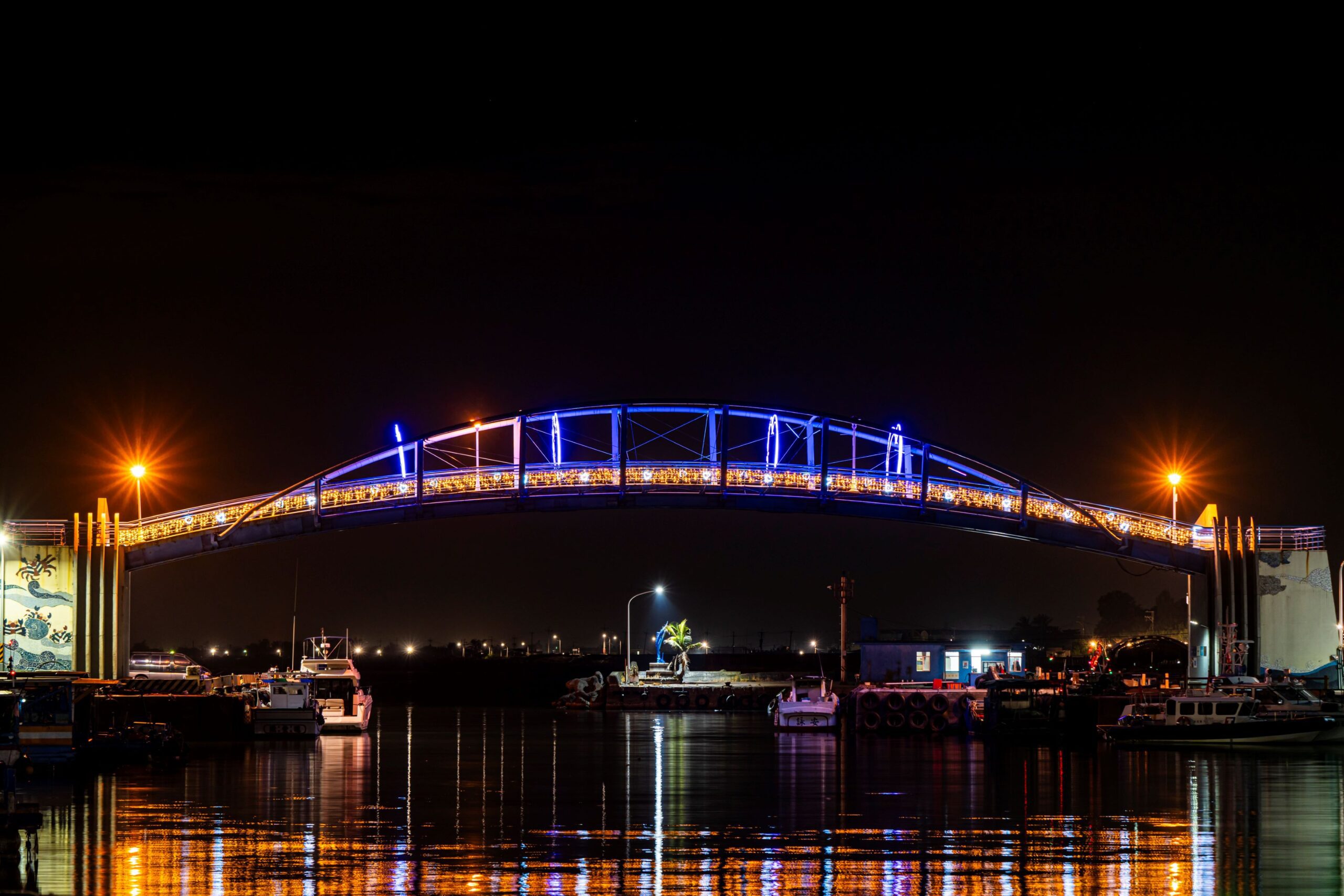 繼屏東燈節於上週登場,枋寮、鹽埔漁港也在農曆新年前夕,妝點繽紛的光環境裝置,枋寮漁港以「戀戀漁港」為主題設計,在漁港的吊橋佈置愛心拱門,營造為浪漫愛情橋,入口處則有心型燈飾作品,傳遞著甜蜜的心意,為漁港在夜空中增添奪目的景色,打造出浪漫景緻,「漁港夜間變美了!」吸引不少民眾目光,停下腳步捕捉美照。
