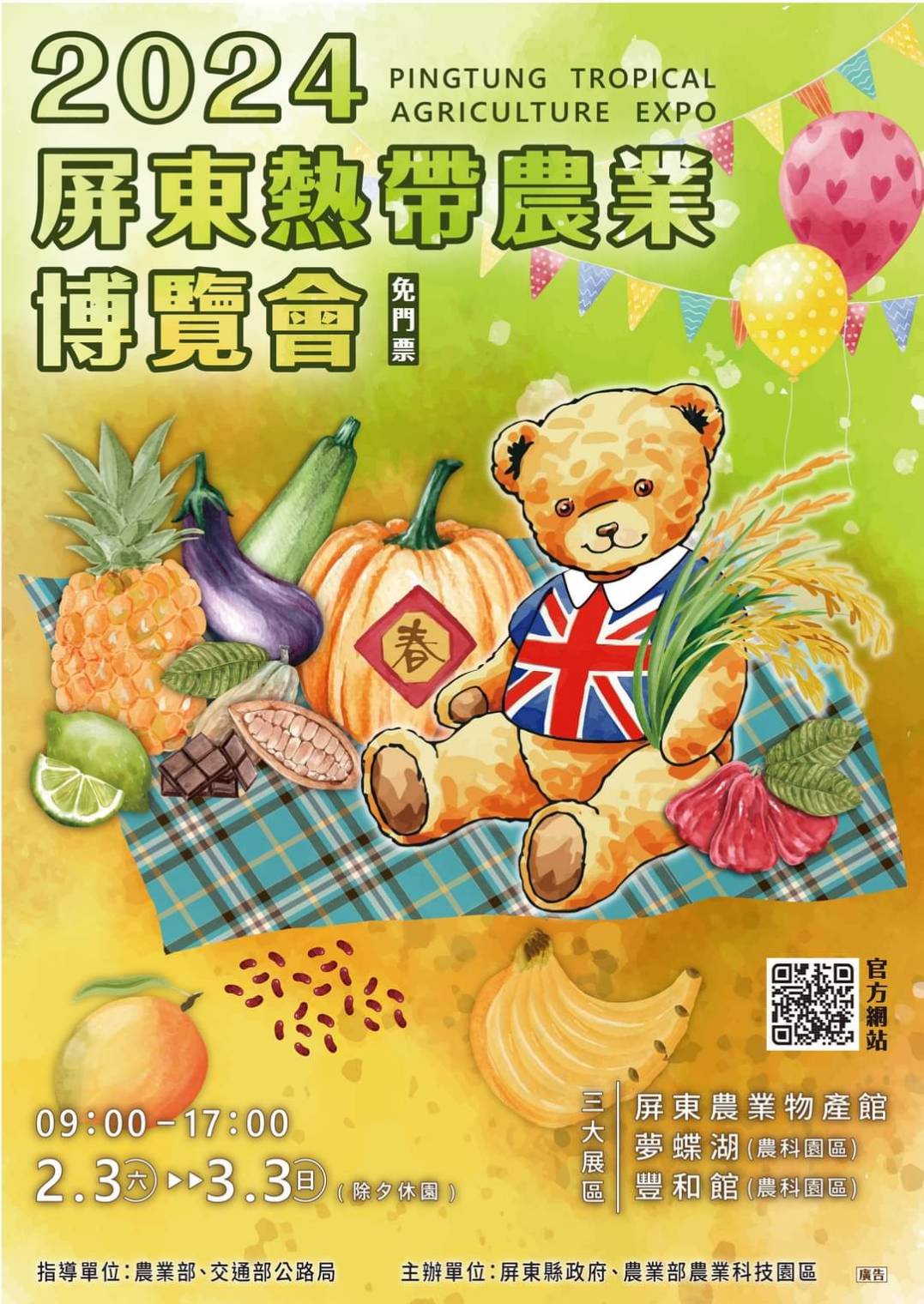屏東縣長周春米表示,今年的博覽會結合泰迪熊、農業科技,以及日本道之驛等國際元素,呈現跨國際、跨區域的概念。屏東縣長周春米表示,透過這次的國際交流,將日本的農業文化與屏東的特色相融合,營造出一場國際性的盛宴,期待為遊客帶來不同凡響的感受,請民眾儘量利用公共運輸,以減緩當地交通壅塞,同時提高旅遊品質。
