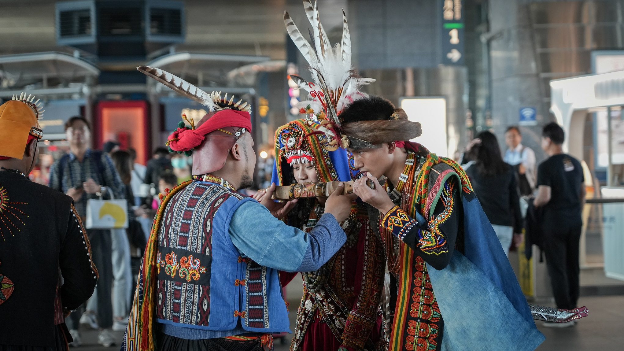 南島族群婚禮-行銷快閃活動於今3日(六)下午15:00至16:00,在臺灣高鐵台中站2F大廳熱情展開,由屏東縣瑪家鄉排灣部落青年會演譯的排灣族傳統婚禮文化過程。