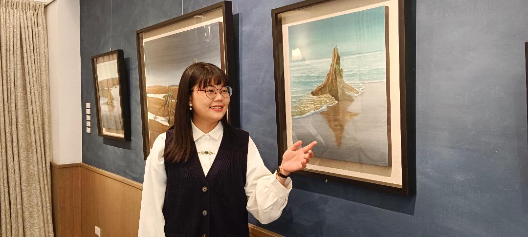 ▲姚思妤在晝作前說明。(圖/記者林常雄)