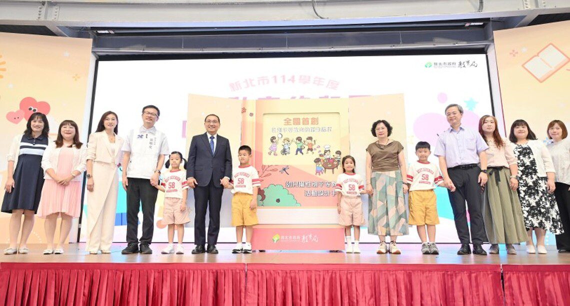 新北市政府今(19)日舉辦114學年度公私立幼兒園園長(主任)會議,市長侯友宜攜手全市1,079位園長主任,宣示啟動「新北幼教心幸福運動」,為幼童打造幸福健康的成長環境;同時發布全國首創《性別平等教育的探索旅程》幼兒園性平教學手冊,盼引導幼兒從小建立多元尊重價值觀。