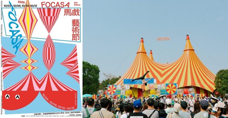 圖左/主視覺由台灣知名設計師葉忠宜操刀_照片提供:FOCASA馬戲團。圖右/2025FOCASA馬戲藝術節_照片提供:FOCASA馬戲團