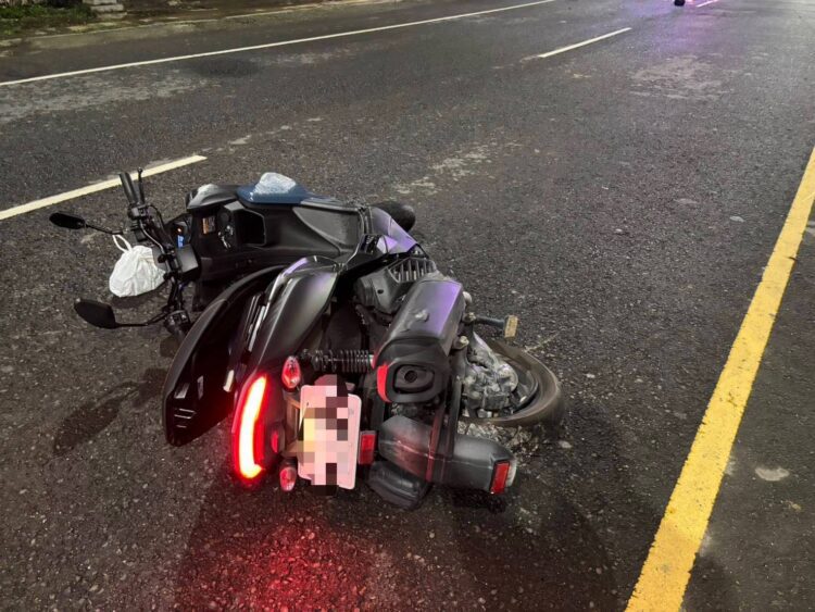 現場為55歲張姓男子騎乘摩托車沿188市道東往西直行,至肇事地點時,疑似輾過路中水泥塊而自摔,張男倒地受傷送醫救治,全案已依規定測繪、照相處理,詳細肇事原因有待鑑定。