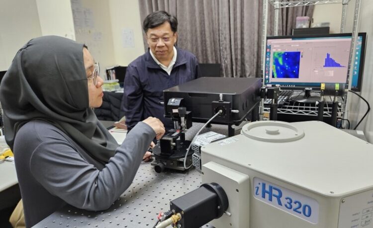 圖/臺科大何清華特聘教授與晶體成長與光學量測實驗室印尼籍博士後研究員Luthviyah_Choirotul_Muhimmah一同量測二維半導體材料光學特性以及載子壽命。