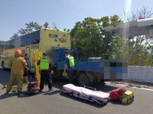 2月15日12時許恆春分局獲報恆春鎮墾丁路段發生一起交通事故,林姓男子駕駛一台自小貨車不慎追撞停放於公車站的客運,致貨車車體變形,駕駛卡在車上動彈不得,由消防人員破壞車體將駕駛救出,身上有多處創傷,送往恆春南門醫院救治。