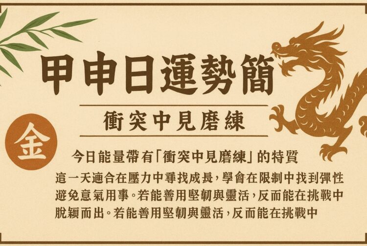 總體而言,甲申日帶有「金木交鋒、衝突中求突破」的氛圍。若能在壓力下保持靈活與堅定,將可在挑戰中孕育新機,化阻力為助力。