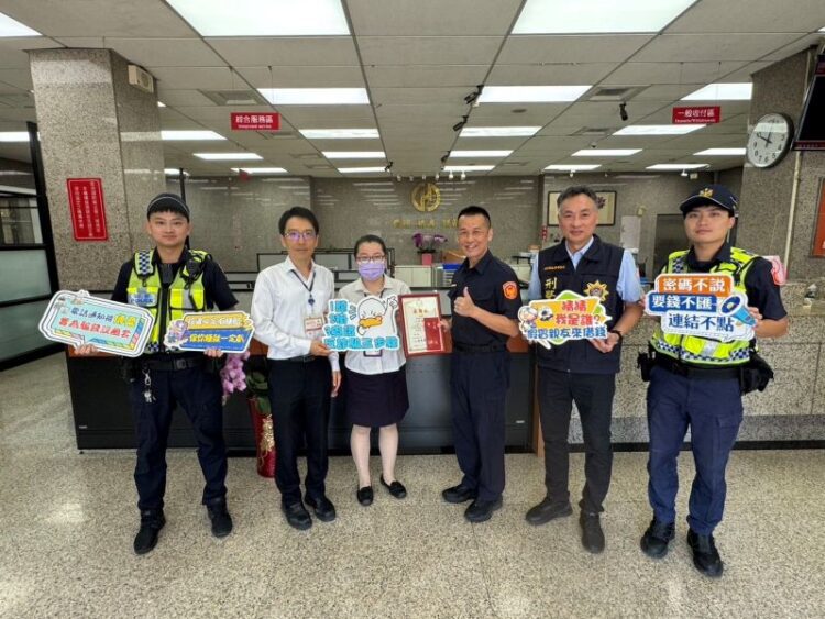 【記者何勁陞/潮州報導】 許多詐欺案件中,幸有金融機構職員機警,在民眾匯款時進行關懷提問發現異狀,即時通報警方成功攔阻詐騙,屏東縣政府警察局潮州分局長林俊雄為感謝轄內金融機構通報警方並成功阻詐,特地於日前率偵查隊隊長段榮金等員前往轄內金融機構頒贈感謝狀及禮券,感謝行員協助攔阻民眾被害,共同守護民眾的血汗錢,同時向行內等候民眾解說近期常見之詐欺手法與詐騙徵候,提升民眾防詐意識。