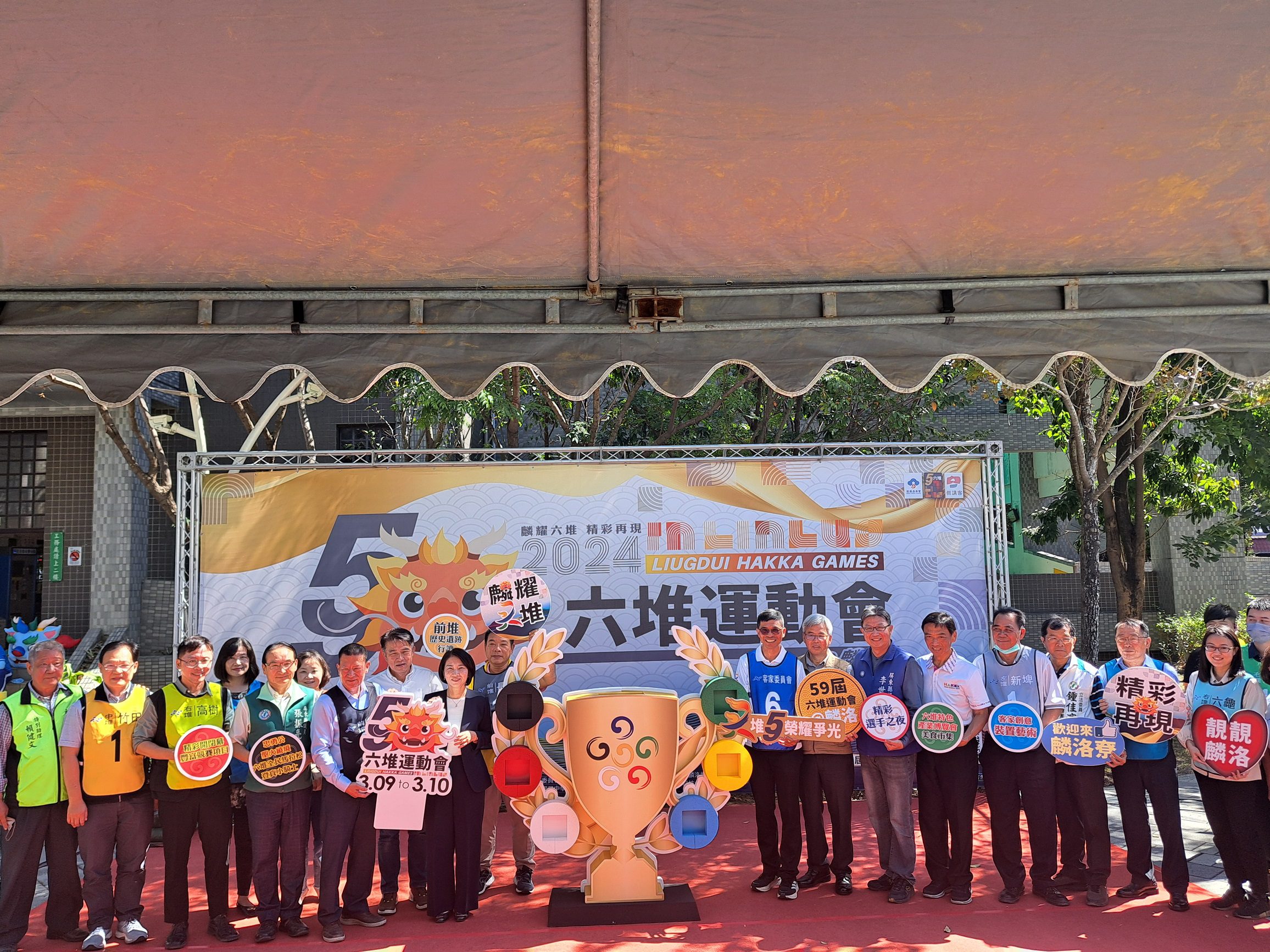 【記者戴英薇/屏東報導】 歷史悠久、素有「大武山下小奧運」美譽的六堆運動會,今年邁入第59屆,即將在3月9、10日二日在屏東縣麟洛鄉熱鬧舉辦,20日由屏東縣長周春米、客委會客家文化發展中心何金樑主任、麟洛鄉長鍾慶平等六堆各鄉區代表及健力選手馮慶弘、軟網選手何孟勳在屏東縣政府舉辦開幕記者會,歡迎全國民眾到南部客庄體驗運動賽事並認識客家之美。