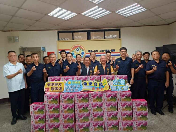 【記者何勁陞/里港報導】 農曆8月15日中秋節將至,屏東縣警察之友會東港辦事處主任黃耀德與副主任洪清進,於10月1日中秋節前夕帶著文旦禮盒至屏東縣政府警察局東港分局慰問員警辛勞,並頒發破案獎勵金,祝福警察同仁中秋佳節愉快。