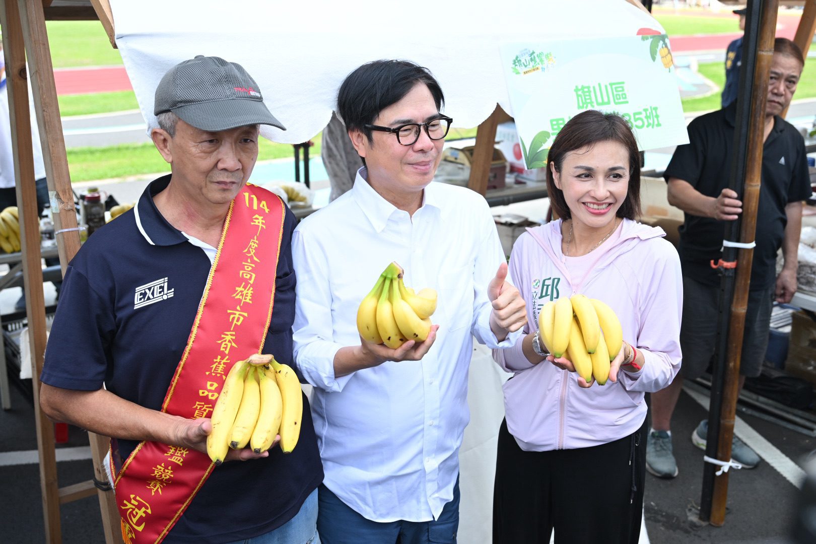 邱議瑩說明,8元是受七、八月風災影響的「次級品價格」,市面上旗山優質香蕉的產地價是10元至15元、今日的市場批發價格更是超過20元;市府與農會也協助收購加工成果乾、脆片等產品,共同穩定市場供需,減輕農民壓力。