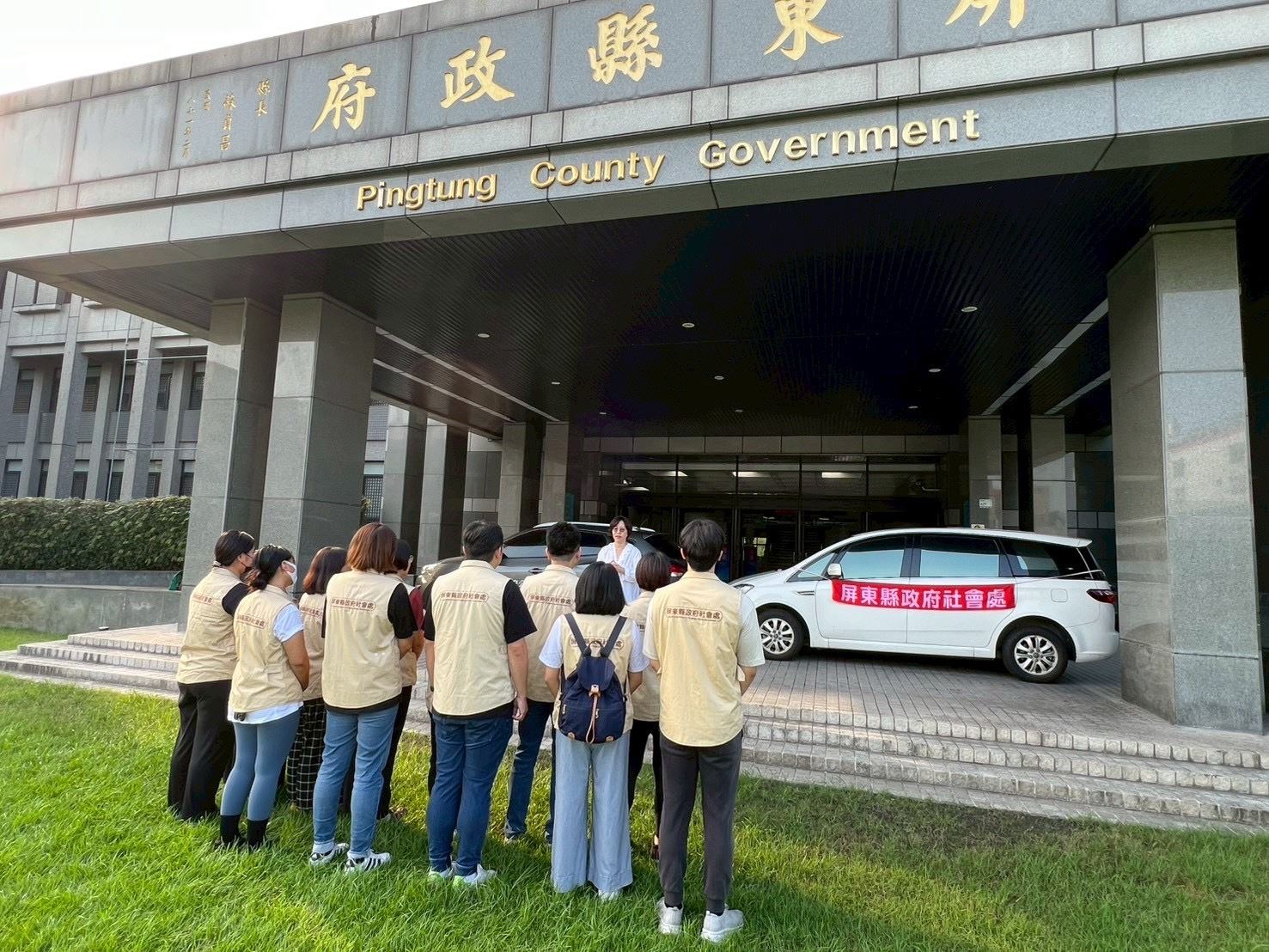 縣府社會處長劉美淑一早於屏東縣政府大門口勉勵出勤社工同仁,提醒務必注意自身安全、補充水份與適當休息,到收容所現場後協助花蓮縣政府復原規劃,共同陪伴與關懷因家園受災的鄉親族人,發揮社工專業。