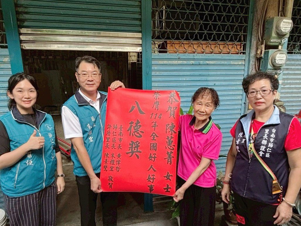 「八德獎」為全國性最高榮譽的好人好事獎項,由中華民國好人好事運動協會主辦,旨在表揚長年奉獻社會、弘揚人間善念的典範人物。陳蕙菁女士以「歸仁的女兒、永遠的志工」為人所熟知,數十年如一日默默奉獻,用真誠與行動溫暖地方鄉里。