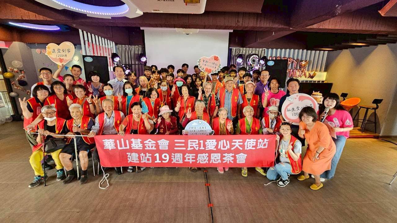 【記者蘇舒 / 高雄報導】 華山基金會三民1天使站在地設站已屆滿19年,累積服務362位弱勢長輩,為感謝日常服務的義工及在地企業長年支持,於今日上午9點30分在國立高雄科技大學建工校區交誼廳舉辦「建站19週年感恩茶會暨百歲人瑞慶生」,邀請華山服務的人瑞王奶奶及16位長輩、善士與義工們一起同樂歡慶。