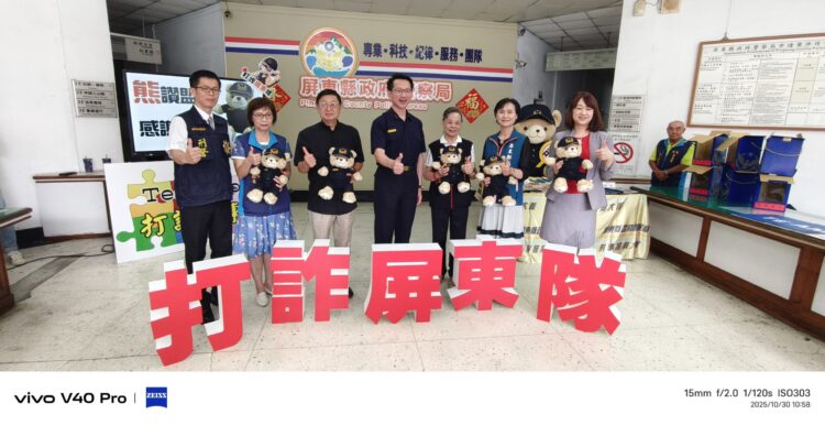 【記者戴英薇/屏東報導】 「全民防詐、從你我開始!」屏東縣警察局今(30)日發起「熊讚守護」行動,結合玉皇宮、慈鳳宮、屏東郵局、新光銀行東港分行、吉隆鋼鐵與中洲建設等宗教、金融與產業代表,共同宣誓守護民眾財產安全。透過警民情資共享與異業合作,屏警近年成功阻詐近4億元金流,讓詐團無所遁形。