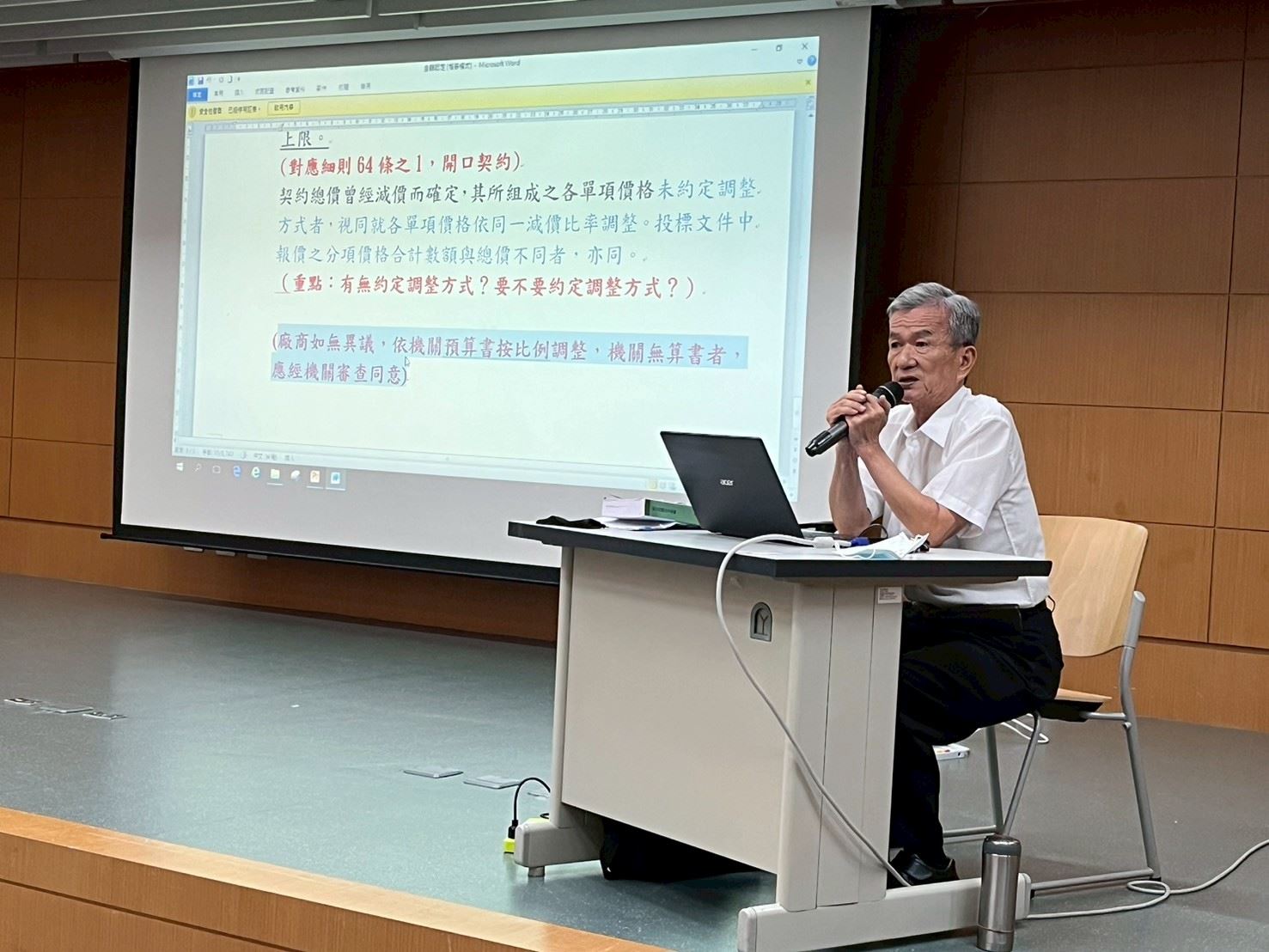 本次研習邀請曾任高雄縣政府秘書處科長的林慶堂擔任講師,以學校採購案件的全生命週期為授課主軸,結合法規解說與實務案例,深入探討採購流程中常見的爭議與風險,並融入政風處「廉能工程 屏安啟程」專案宣導內容,強化與會人員承辦採購案件專業能力及廉政觀念。