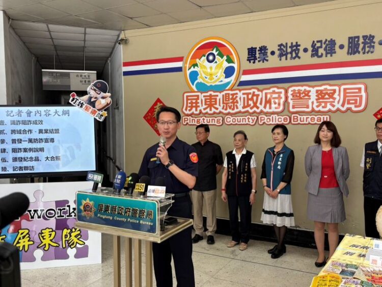 【記者何勁陞/屏東報導】 屏東縣政府警察局為搶先攔阻詐騙受害人匯款,推動「與詐團搶人」防詐策略,積極與百工百業跨域合作及異業結盟,透過資源共享方式,由警方提供最新防詐資訊予各行業轉發分享,再藉由各行業回饋可疑詐騙情資的合作模式,用「熊讚的守護」全面防護屏東在地鄉親錢財不遭詐,統計至今已成功阻詐近4億元的詐騙金額,於(30)日特與屏東市玉皇宮、慈鳳宮、屏東郵局、新光銀行東港分行、吉隆鋼鐵及中洲建設等在地信仰中心、金融機構與產業龍頭攜手合作召開記者會,期望透過宗教信仰、金融體系與企業影響力及社會資源,推動「全民防詐」計畫,打造屏東為一個安全、可信賴的宜居生活環境。
