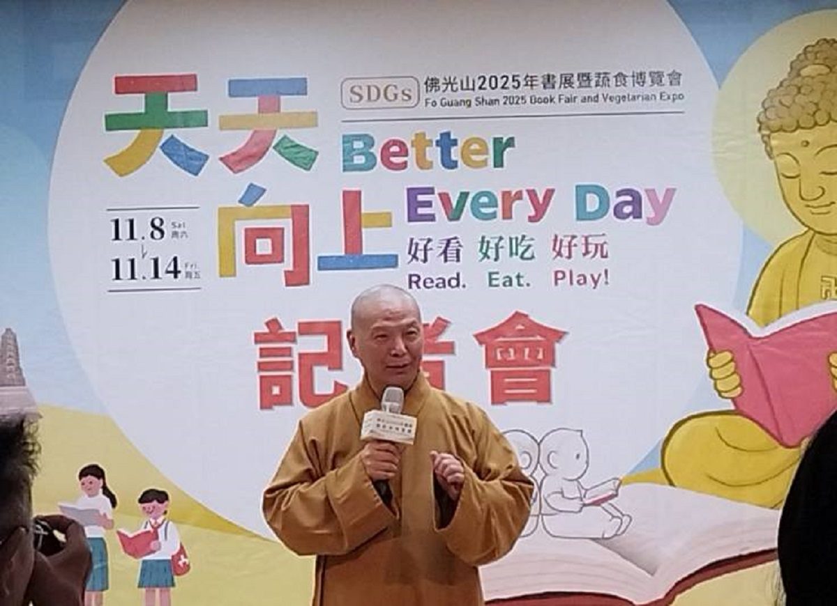 佛光山常務副住持慧傳法師表示,佛光山書展創辦超過10年,理念始終延續星雲大師「讀做一個人、讀明一點理、讀悟一些緣、讀懂一顆心」的核心精神。從早期的「雲水書坊」行動圖書館,到各地偏鄉推動閱讀,如今更結合蔬食與公益,讓「書香」與「善念」一同普及。今年書展首度推出戶外電影欣賞活動《飛鴨向前衝》,以及橫跨克孜爾、敦煌莫高窟、麥積山、雲岡與龍門等五大石窟的沉浸式藝術展,讓觀眾宛如穿越千年文化時空,是本屆最大亮點。
