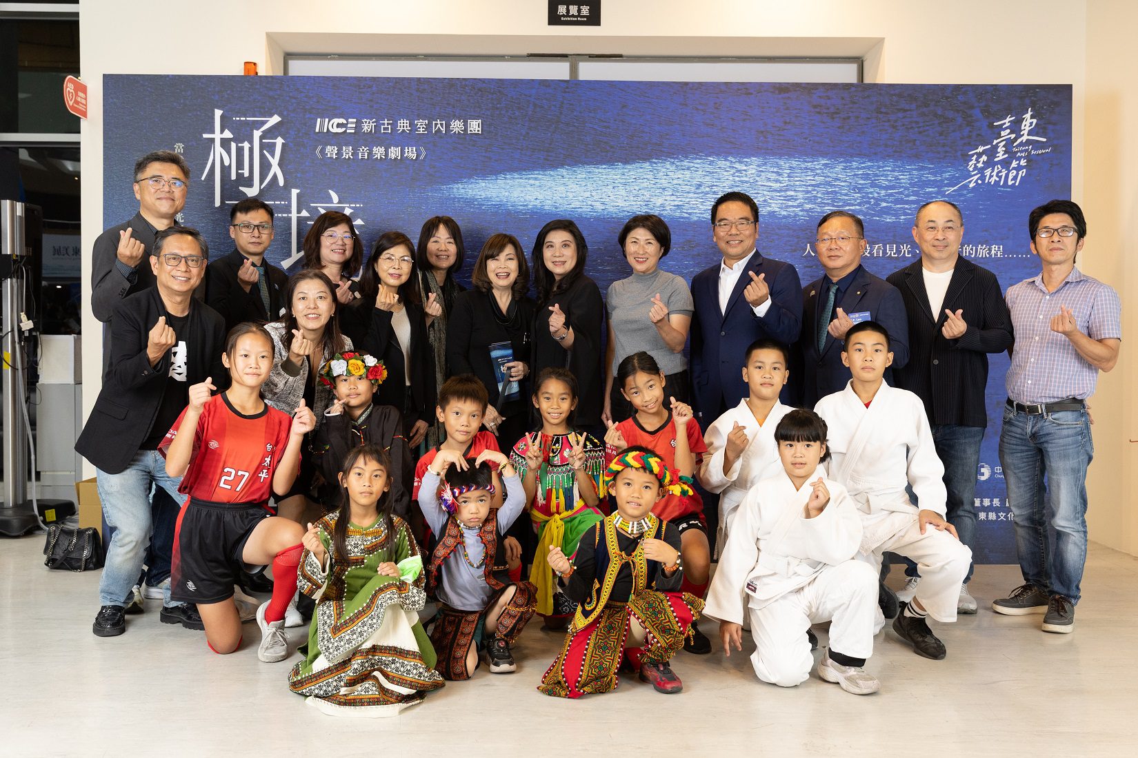 當天,藝術家江賢二本人、公益平台文化基金會董事長嚴長壽皆親臨現場支持。演出後,縣長饒慶鈴代表縣府上台致謝,並頒發感謝狀給新古典室內樂團,教育處長蔡美瑤陪同出席。學生代表則穿著族服、棒球裝等具地方特色服飾在大廳合影,展現臺東多族群文化的活力。