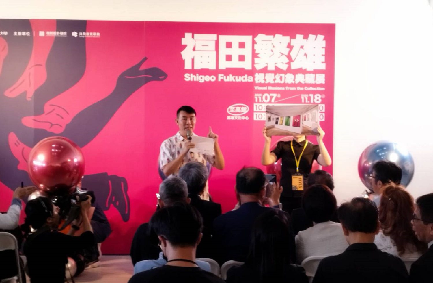 由國立高雄科技大學主辦的《福田繁雄視覺幻象典藏展》,11月7日在高雄文化中心至高館盛大揭幕,引來國內設計與藝文界重量級嘉賓雲集,包括監察委員、知名設計學者、策展團隊以及超過百名設計科系學生與校友到場共襄盛舉。這是福田繁雄睽違15年再度登台的完整展出,一口氣呈現百餘件經典海報與手稿,被視為南部藝文圈與設計教育界的一場重要文化盛事。