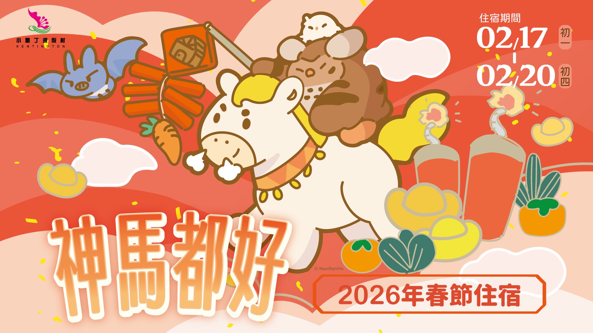 【記者戴英薇/滿州報導】 準備迎接熱鬧的新春假期嗎?今年普發現金到手,快替自己安排一場超Chill的南國之旅吧!小墾丁渡假村限時推出「神馬都好」春節住宿專案,即日起至11月30日前預訂,享「超早鳥」限定優惠,兩人同行每晚僅需NT$5,855元起!以超值價格享受一泊二食的假期,還能參加大小朋友最喜愛的手作體驗與多項趣味應景的春節活動,更有機會抽中住宿券。