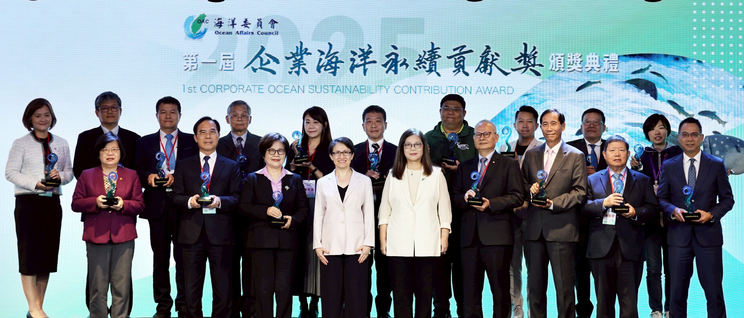 【記者蘇莉湘 / 北部報導】 海洋委員會12日於臺北101舉辦首屆「企業海洋永續貢獻獎」頒獎典禮,公開表揚善盡企業社會責任、積極推動海洋永續的企業。此次共有17家企業獲獎,展現臺灣企業在推動永續發展上的堅定力量與承諾。典禮由副總統蕭美琴親自頒獎,與得獎企業代表及現場貴賓共同見證榮耀時刻,象徵政府與企業攜手守護海洋的決心。