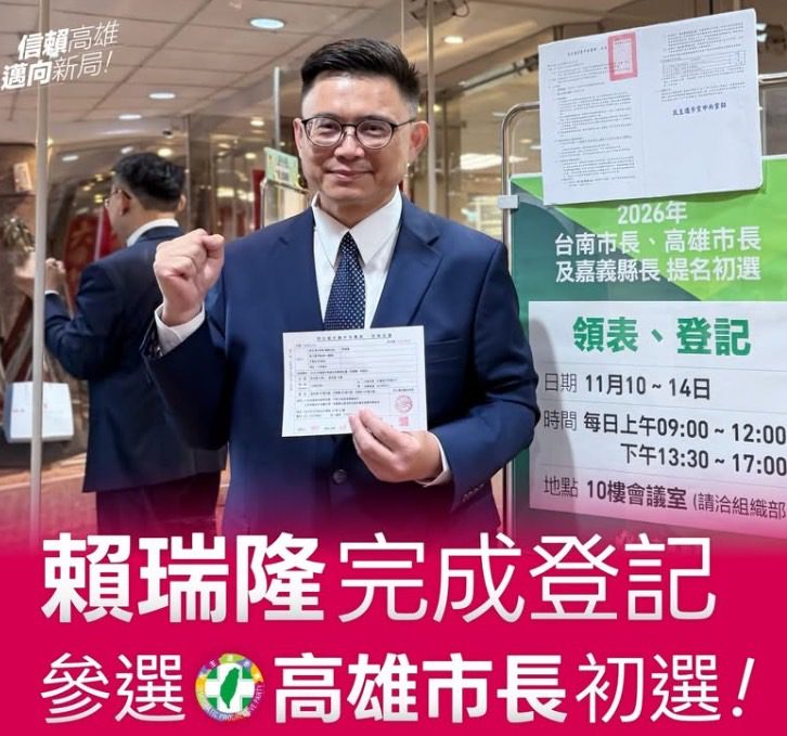 民進黨迎戰2026大選,台南市、高雄市及嘉義縣首長提名初選,10日至14日領表登記。民進黨立委賴瑞隆今天完成高雄市長初選登記,他強調,做好準備承擔重任,他有嫻熟的市政經驗,「今天當選,明天可以立即上工」。