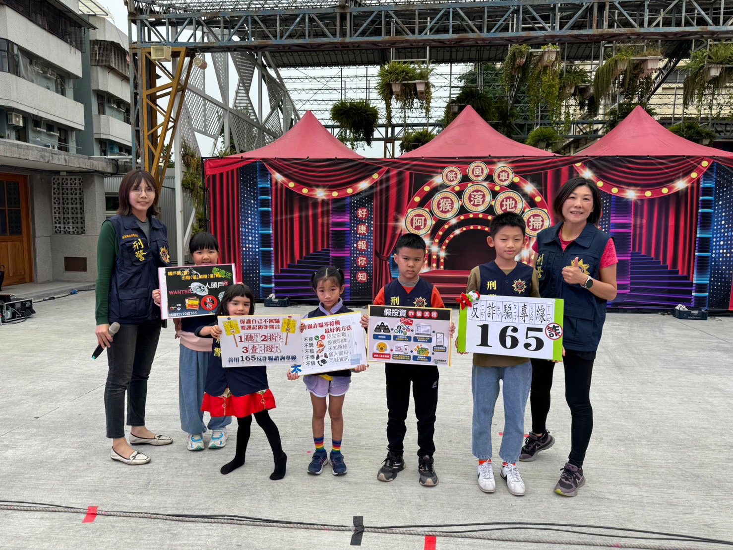 屏縣府警察局並在現場即時招募防詐小尖兵隊,由小朋友大聲朗讀防詐5不箴言「不接陌生來電」、「不聽投資明牌」、「不點未知連結」「不傳個人資料」「不信可疑資訊」,讓現場觀眾熟記防詐口訣,降低受騙機率。