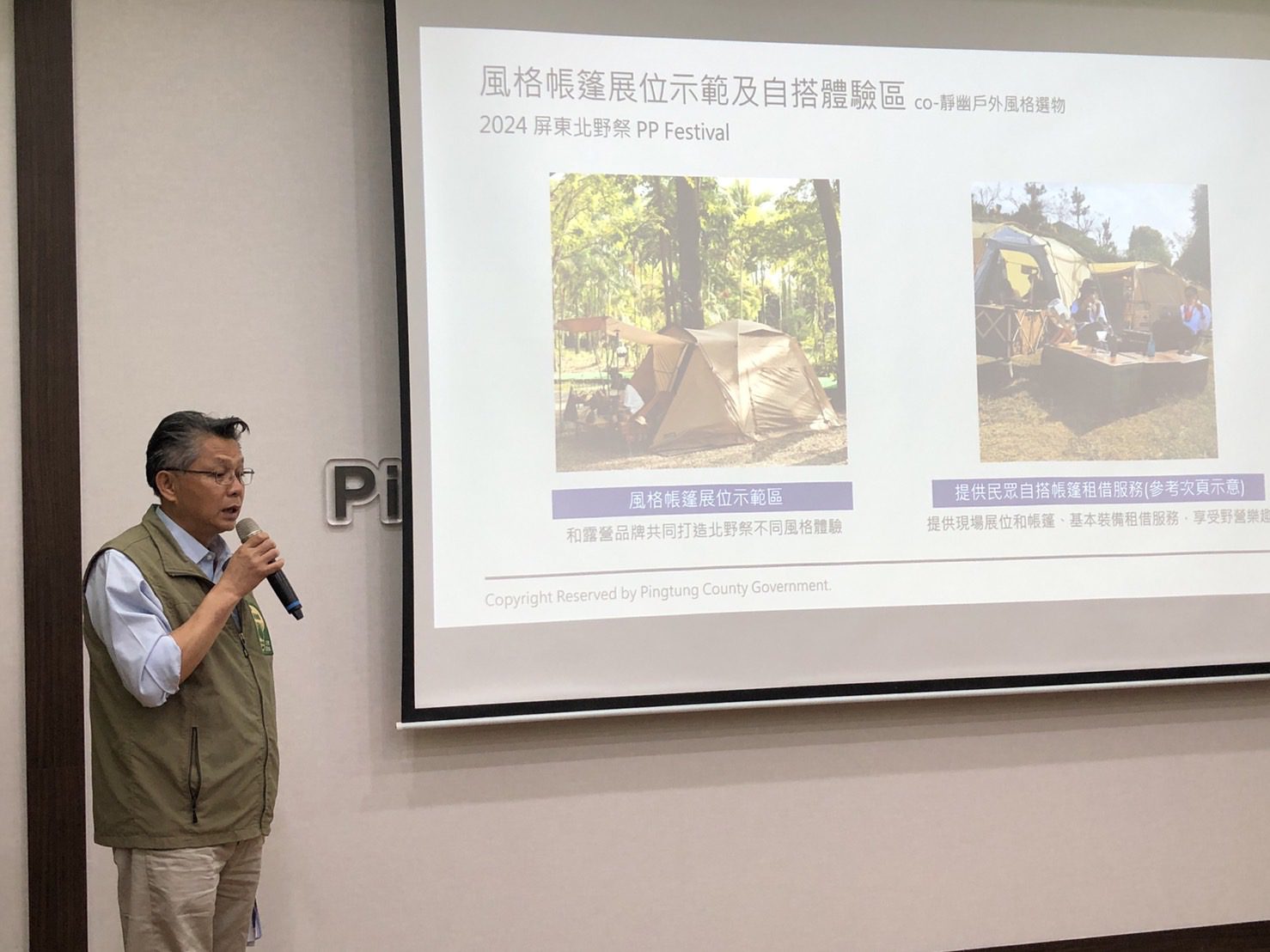 屏東縣政府交通旅遊處表示,首次舉辦「2024屏東北野祭」邀集多家露營帳篷、野營週邊設備及露營車共同響應,包含「歐洲露營車ADRIA-TAIWAN」、「福斯露營車」、「馬布谷戶外」、「JINGYO靜幽」、「初露」、「樂活不露」、「Turbotent」、「ZAMPURE」等國內外知名品牌,活動現場也有提供露營帳篷讓民眾租賃體驗,由達人現場教學第一次搭棚就上手!