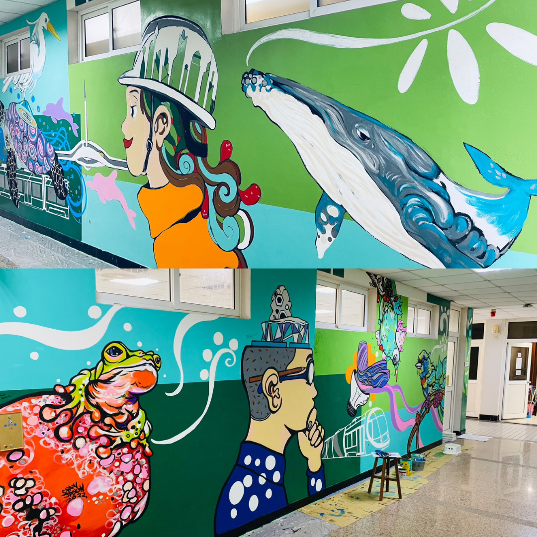 義守大學帶領學生走出教室揮灑創作 邀藝術家許殷豪開辦「永續工程壁畫工作坊」