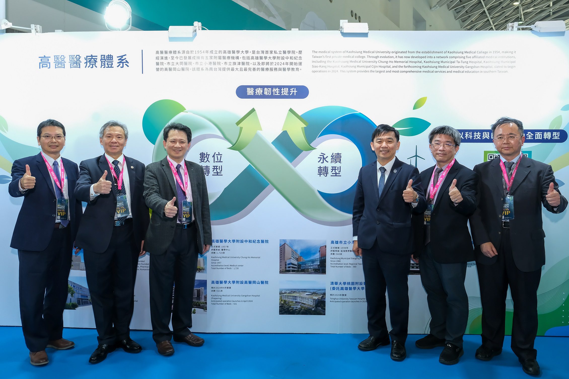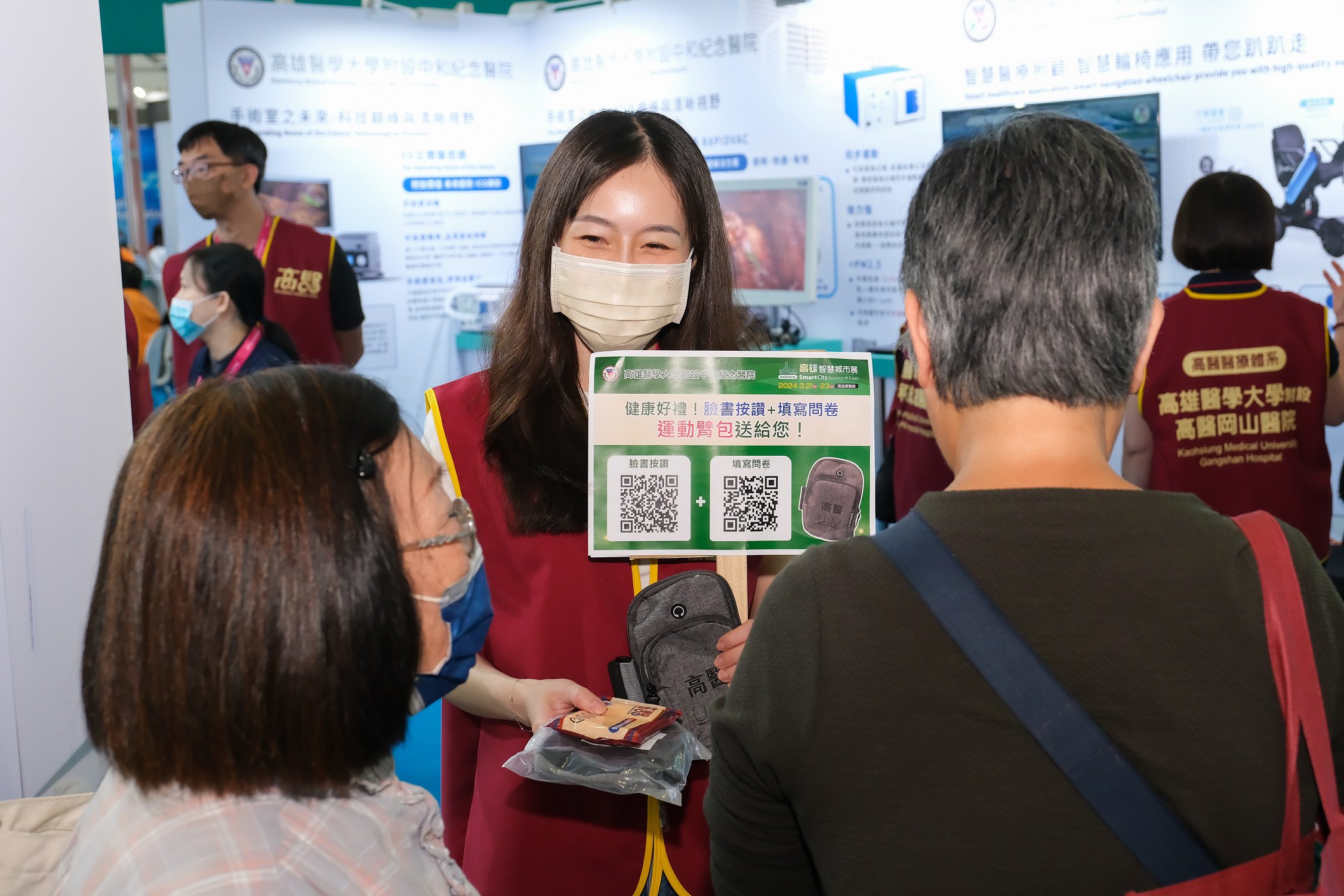 高雄醫學大學醫療體系展示主題精彩豐富,包含呼應綠色醫療的「救急救難一站通&融心匯智道平安」、「智能醫療照護-智慧輪椅應用 帶您趴趴走」、「打擊三高 醫同運動-健康運動走廊」、「綠色轉型 打造淨零新世代」以及強調精準健康的「手術室的未來:科技巔峰&清新新視野」、「旗津智慧長照島-雲端健康管理整合平台」等六大主題,另外,設置展示高醫體系智能醫療推動專區,以高醫齊心數位轉型為主題,展示體系智能發展「產學研發」、「AI 人才培育鏈結實務發展計畫」、「智能醫療」三大主軸。