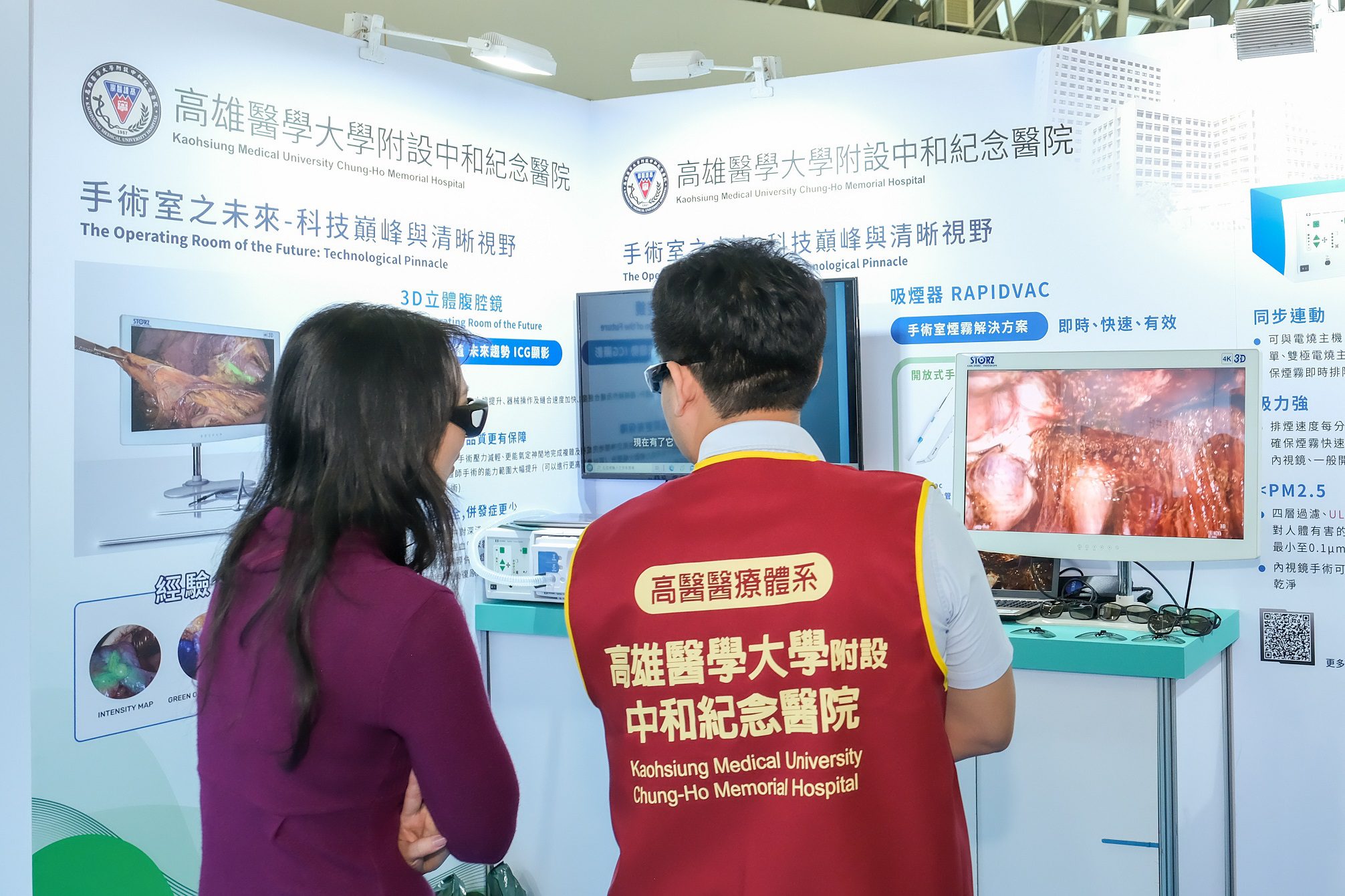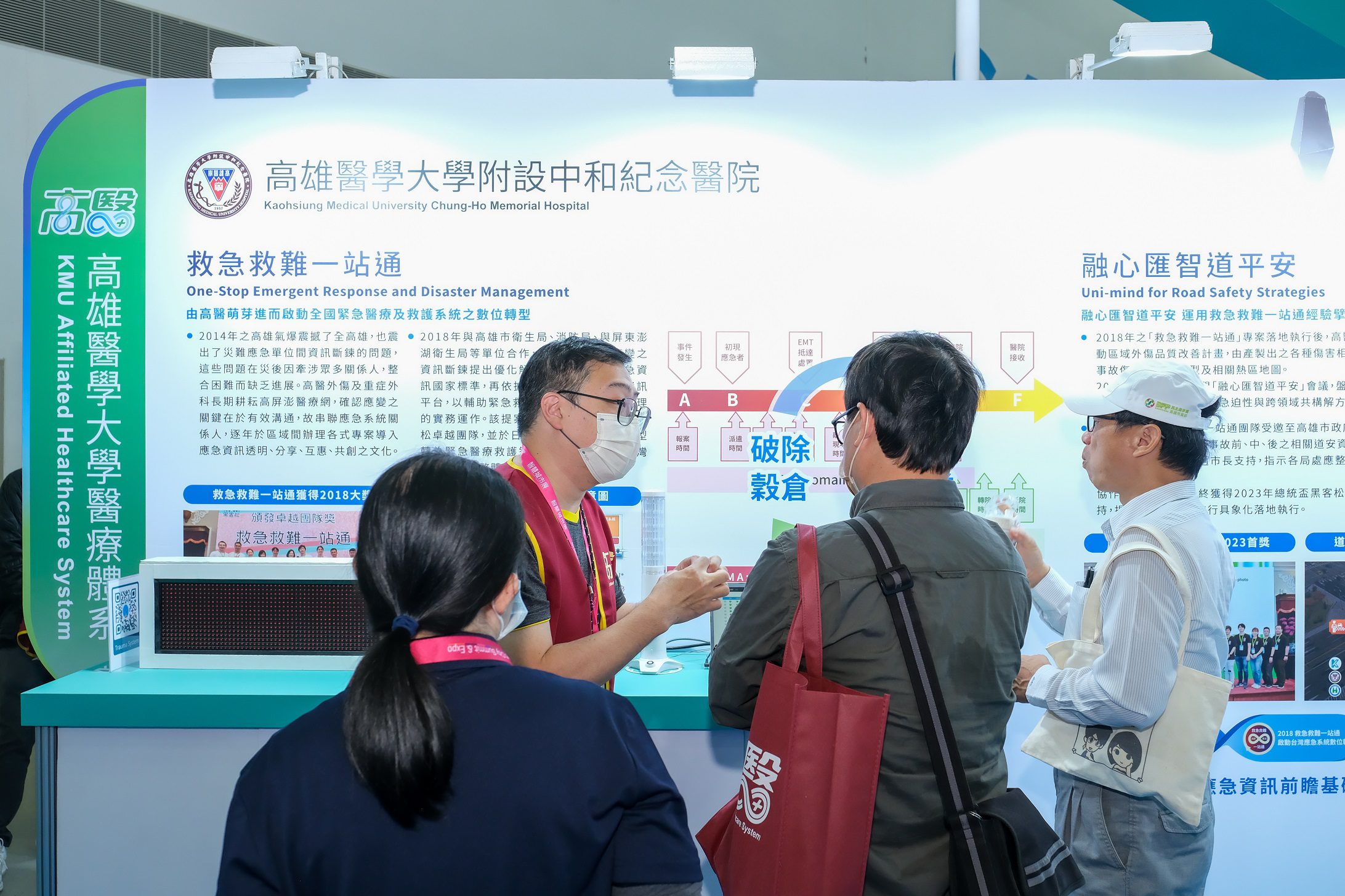「救急救難一站通&融心匯智道平安」由高雄市政府與高醫團隊跨領域組成的「8R+」團隊所打造,透過串接交通事故各類資料庫,可更清楚辨識道安事故因果、熱點風險及因應對策,並於2023年總統盃黑客松競賽中獲得卓越團隊首獎,展現跨領域合作增加社會影響力的公私協力價值。「手術室的未來:科技巔峰&清新新視野」著重於3D影像手術的前沿技術,並在ESG永續熱潮下,高醫透過先進的手術煙霧排除技術,為減少醫護人員於手術過程中吸入過多煙霧,為少見全部手術室配置手術煙霧排除裝置之醫學中心,希冀能將民眾帶入手術室的嶄新世界。