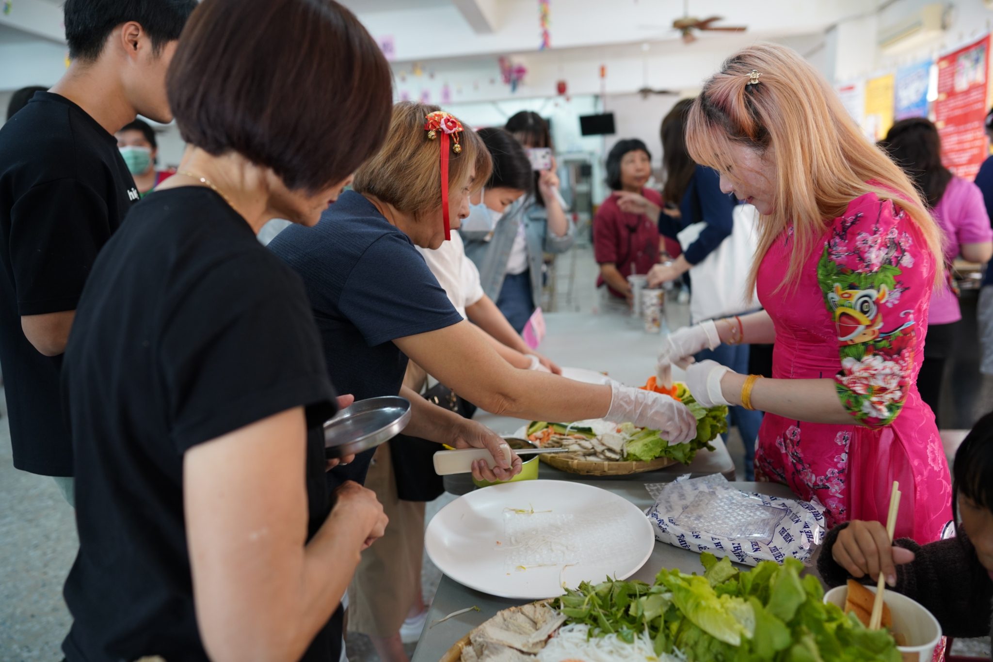 活動現場推出DIY越南生春捲及中國温州麥餅製作,現場體驗大受歡迎。另在享受美食同時,安排了精彩節目;姐妹身著各國國服表演上菜秀、特色傳統舞蹈、越南及印尼歌曲歡唱、社區小市集及摸彩等精彩的多元文化活動;新住民姐妹們自發性辦理的回娘家活動,在大家齊心協力下緊湊精彩、圓滿成功。