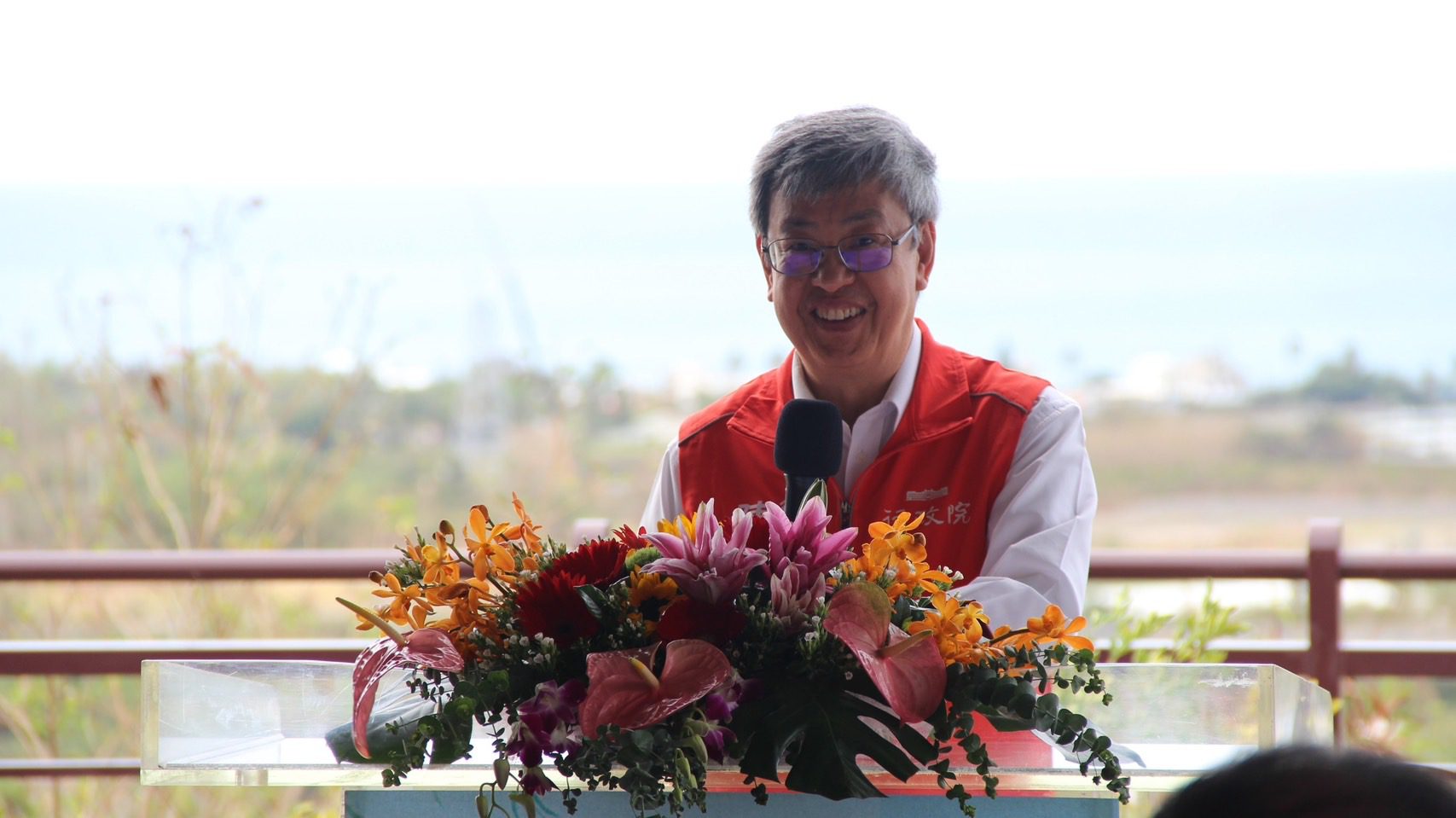 陳院長致詞時表示,行政院已經核定屏南快道的可行性評估,屏東縣政府十分積極爭取基礎建設,這幾年來公共工程建設加上前瞻基礎建設中央補助經費高達2800億,包括國道10號、里港交流道、高屏第二快速道路、台九線等多方改善工程,中央目標是建立高快速鐵路網、公路網,以達成台灣一日生活圈。