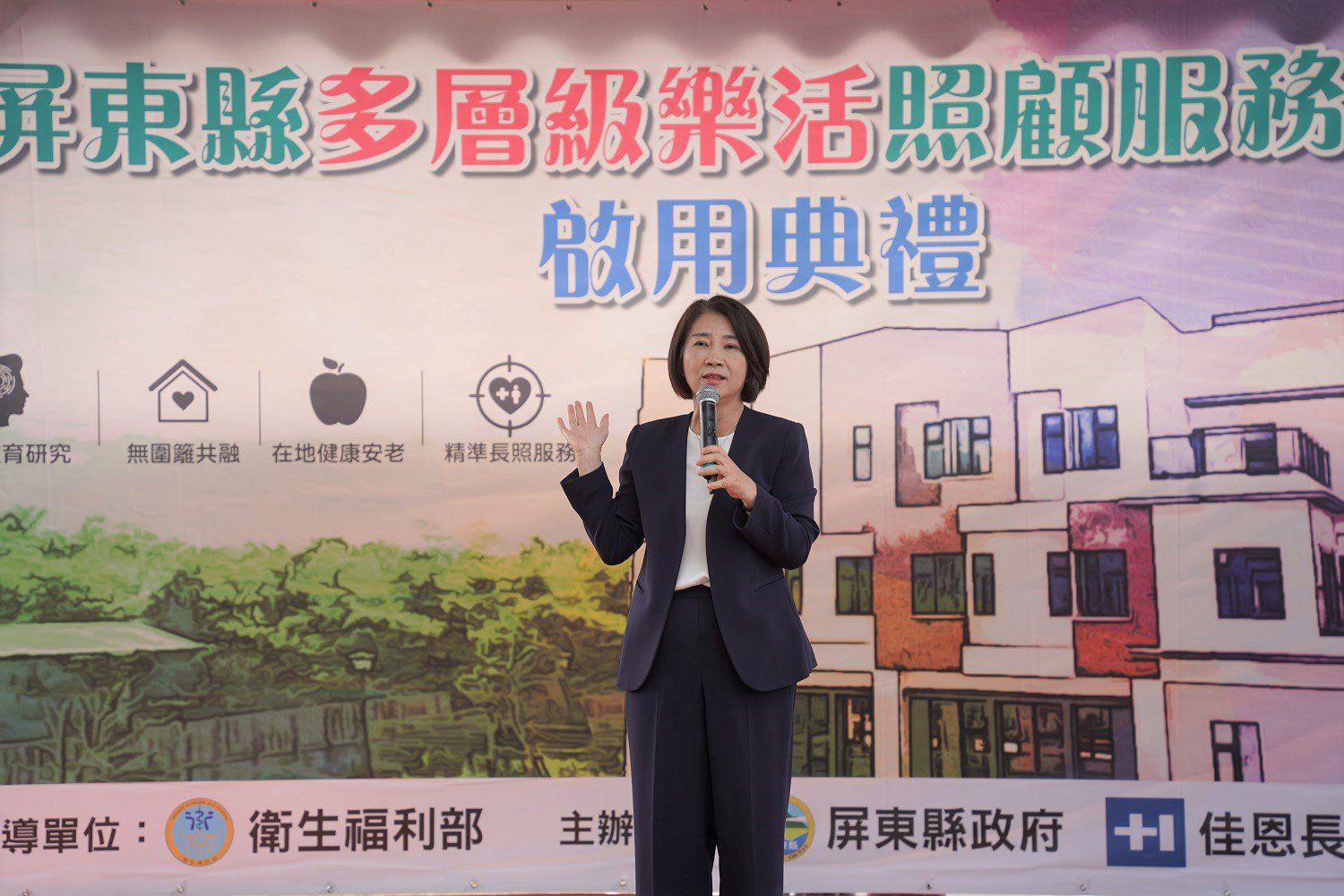 周春米表示,因應高齡化社會的到來,她一上任就宣佈成立長照處,現啟用多層級樂活照顧服務園區,則是採取OT促參方式,工程總經費近4億1,500萬元,她感謝潘孟安前縣長的先期規劃與努力,更期許團隊未來提供更多專業溫暖的長照服務。