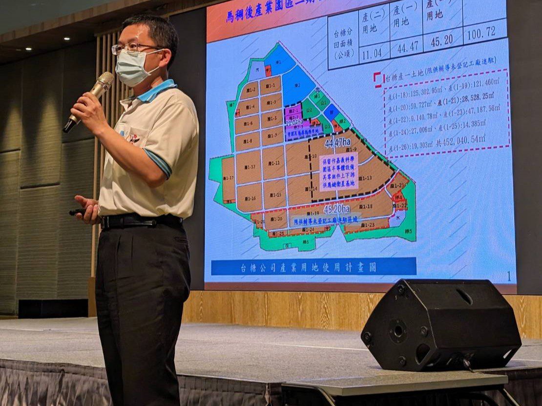 ▲招商座談會揭開半導體產業新局由台糖王聰霖組長簡報。(圖/經濟部產業園區管理局)