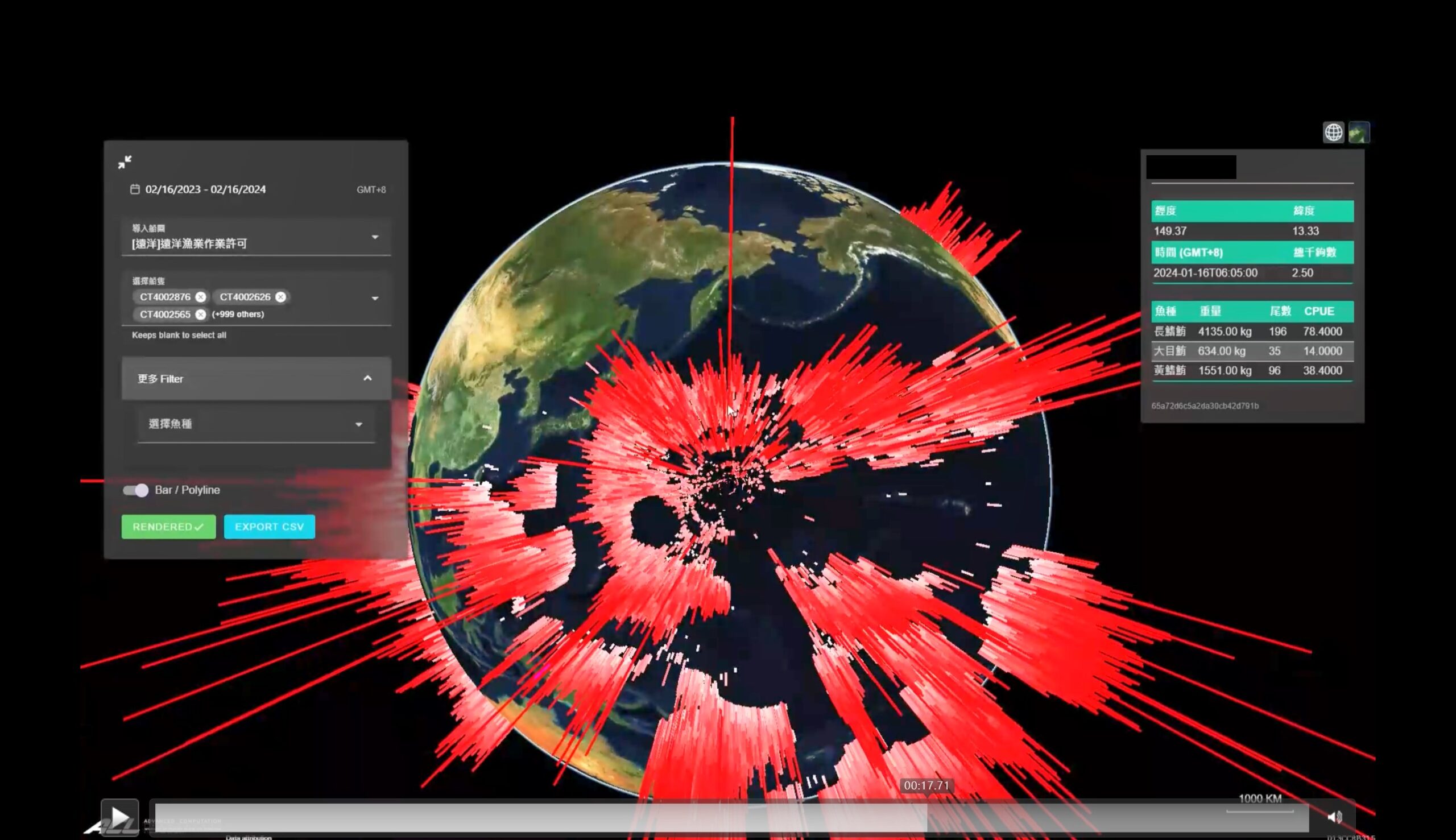 許為元副教授接續講授「智慧海洋-數據的重要性」,說明利用兩種以上高密度資料配合模式即可獲得近沿海及遠洋漁獲情形預估,透過圖像化地理資訊系統(GIS)展示離岸風場航道劃設的實際成效,整合電子漁業日誌能展示全球漁獲分布及海巡署藉由自動辨識系統(AIS)、船舶監測系統(VMS)及航程紀錄器(VDR)分析船舶航行模式,瞭解走私嫌疑船航跡,達到科技輔勤、協助查緝並攔截走私。