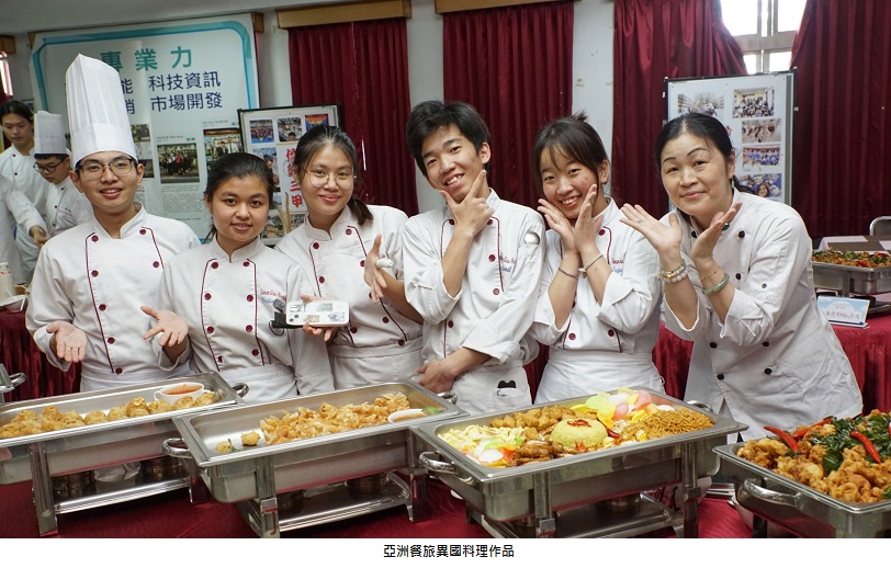 台南亞洲餐旅學校今(3)日在該校禮堂舉辦「藝異飛帆」畢業成果展發表活動,由三年級各班級推出特色菜餚,現場提供熟食,共分為中式料理、日式料理、甜點飲品及表演活動,敬邀餐飲科各專業職類老師拿出自身絕活,推出了金黃原野雞唐揚、什錦醋味香米飯、櫻花蝦炒飯、涼拌鴨賞、拔絲鮮果盅、麵茶提拉米蘇及兩道來自印尼及越南的異國料理.